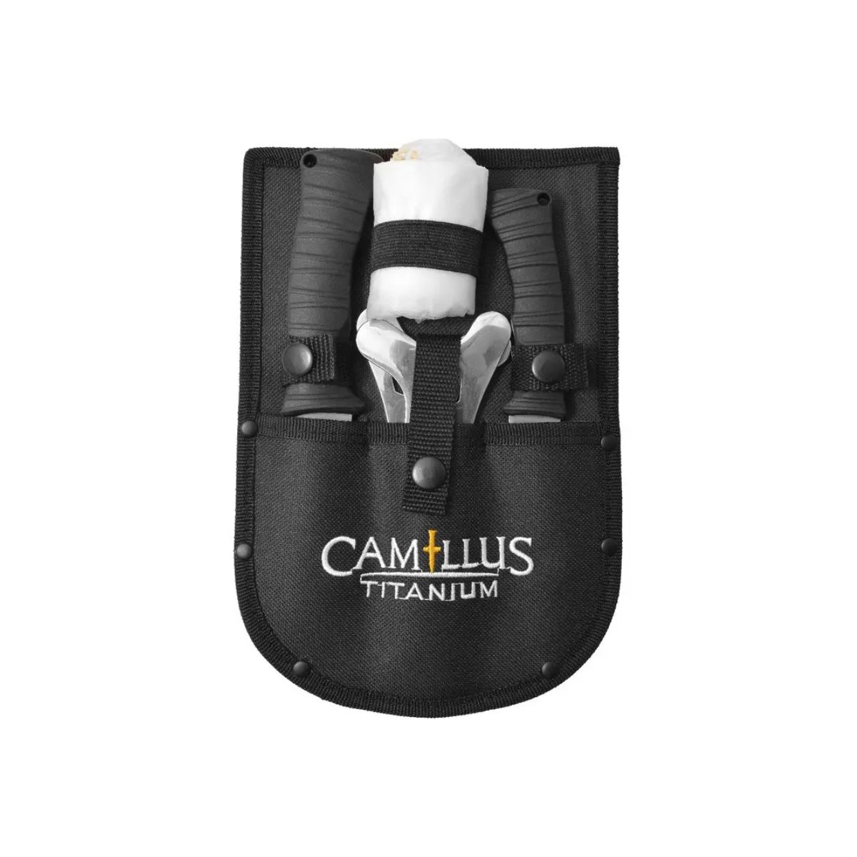 Camillus 5 PIECE ESSENTIAL HUNTING KIT je soubor pěti věcí, které jsou nezbytné pro přežití v přírodě nebo na lovu. Obsahuje dva nože, rukavice, rozvěru a pouzdro.