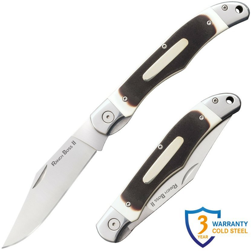 Ranch Boss je původně navržen pro farmáře, lidi pracující v zemědělství nebo jiném prostředí, kde nůž vlivem počasí bude extrémně namáhaný. Díky svým vlastnostem si však získal i běžné zahrádkáře, lovce a lesníky, nebo všechny, kteří se rádi pohybují v přírodě. Proto Cold Steel přichází s cenově dostupnější variantou tohoto zavíracího nože, Ranch Boss II. Tento nůž je vyroben s důrazem na užitkovost, odolnost a cenu.